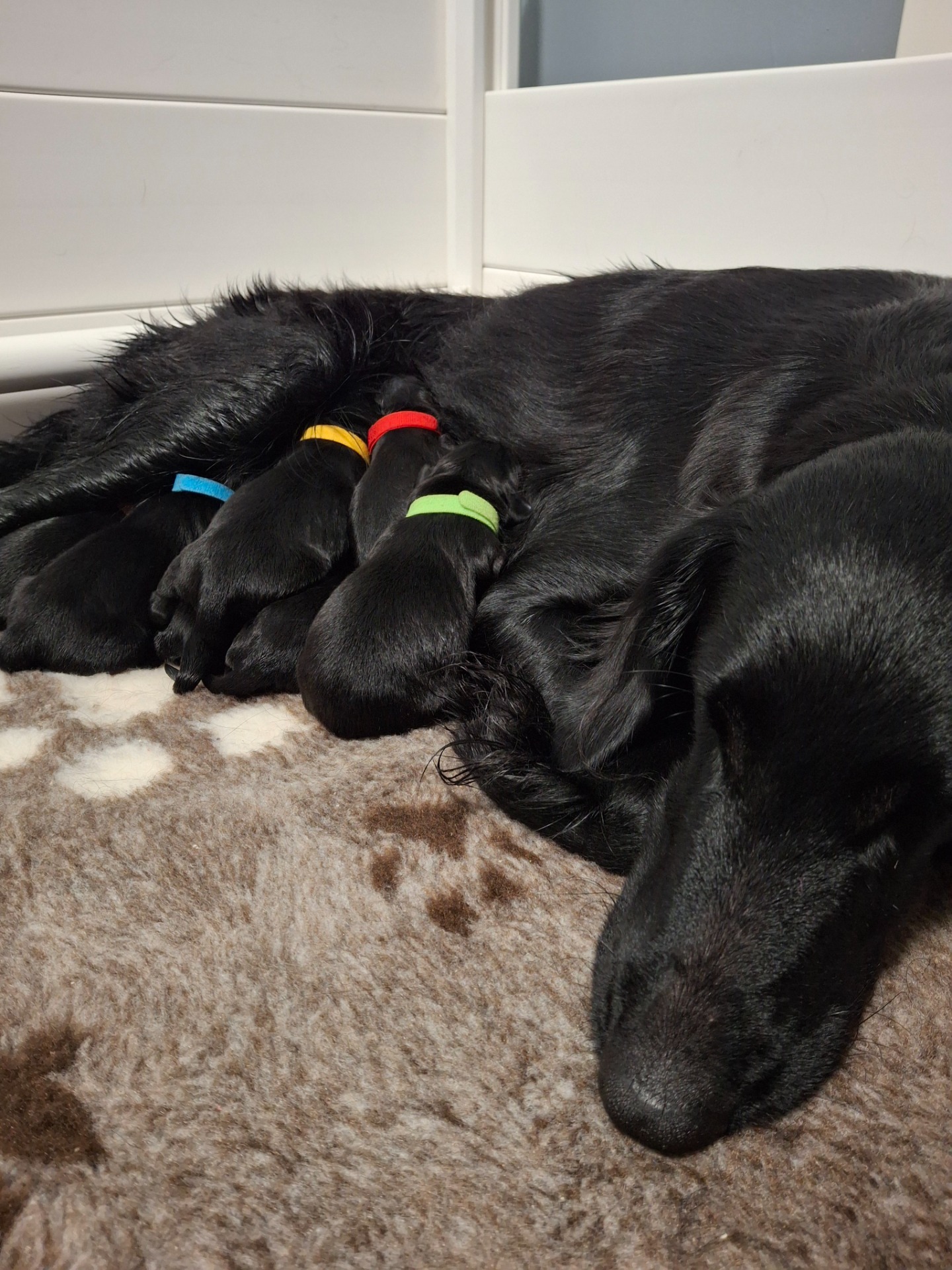 27.12.2025: Pennut ovat täällä; kolme narttua ja neljä urosta syntyi klo 6:30-9:14 välillä. Äidillä ja pennuilla kaikki hyvin.